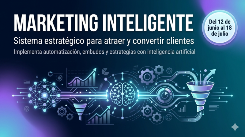 MarketingMARKETING INTELIGENTE CON IA📅10 Abr 2026 y 22 May 2026 · Viernes 3:00 PM a 6:00 PMInscribirse